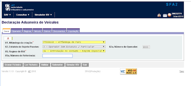 ÉTABLIR LA D.A.V. (DECLARAÇÃO ADUANEIRA DE VEÍCULO) PAR INTERNET. | Il faut compléter la DAV sur le site des Finanças. Vous devez avoir votre NIF et votre code d’accès à votre espace. Gratuit si exempté d’ISV ou alors faites le calcul du coût de cette taxe sur le site. | Prévoir de joindre de nombreux documents. |